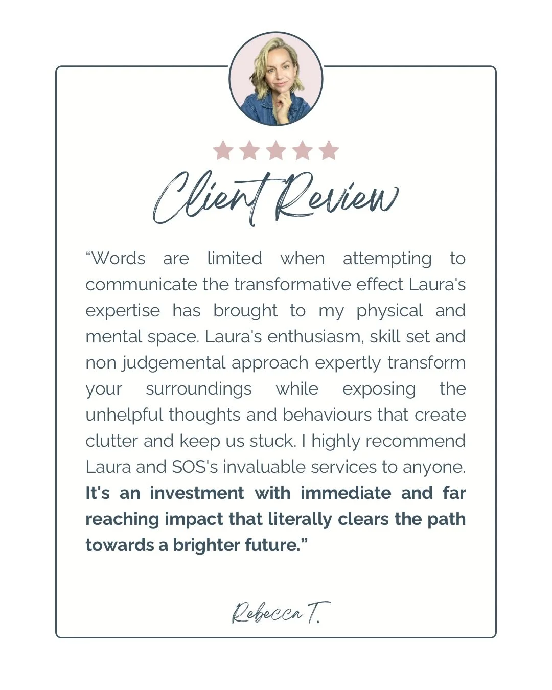 βI needed the push to find a system that worked for my busy life. Together with Laura, we did just that. We worked hard and the magic happened. I have a absolutely beautiful personal space that I can enjoy again and be proud of. Take the step, it's worth it."